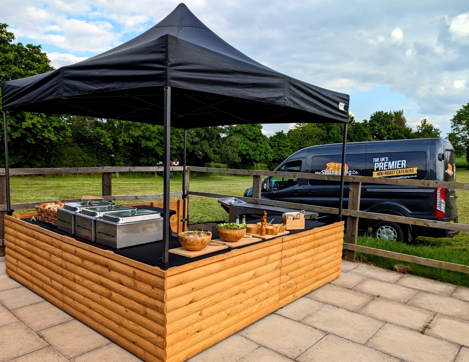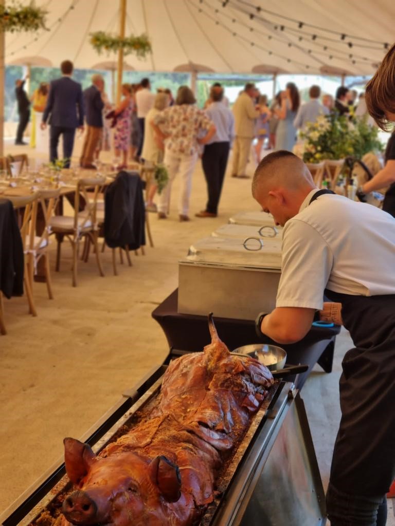 We have hired Spitting Pig twice now in two different venues and both times it has been terrific. Last week we had them for our daughter’s Pre-wedding Dinner which was so much fun. All the staff were great and most helpful. Claire and Darren made everything very easy for us. We had the Alfresco menu with delicious starters, followed by the roast, potatoes and salads and then two desserts. Vegetarians and other food requirements were met very well and everyone thoroughly enjoyed the evening. It was all cleared up without fuss at the end. The team know what they are doing, come and see it all up and clear seamlessly. I would thoroughly recommend Spitting Pig and will probably hire them again on another occasion.