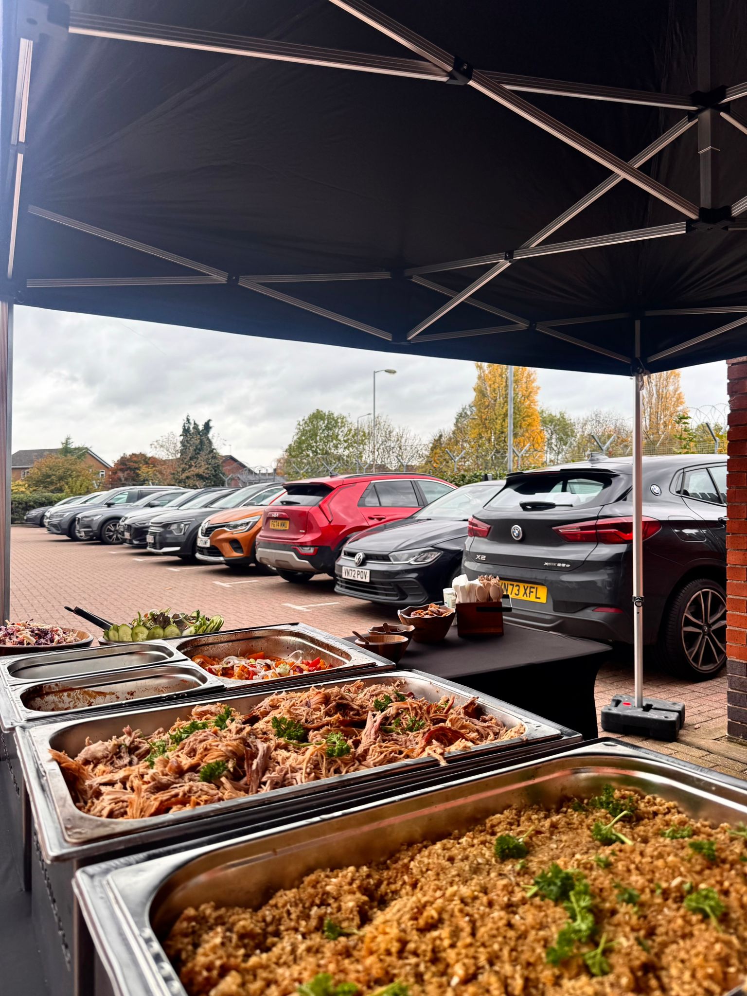 Before making it to the business park, however, the Hog Roast Chilwell did go through what looked to us like a small Halloween trick, for just a moment. A mix up in messaging meant the team initially set out to Chilwell Barracks, meaning our catering managers Darren and Claire had to go negotiate with some very bemused armed MPs who were sent scrambling around the barracks in search of a Melissa of Stepney Construction who had hired us. Thankfully, all was worked out in the end and instead everyone involved came away with a small Halloween treat in the form of an amusing story – though the MPs were feeling a little tricked having got excited about the prospect of our hog roast! Maybe next time, lads, because we had to head out to the business park where our client thankfully had not had to wait too long!